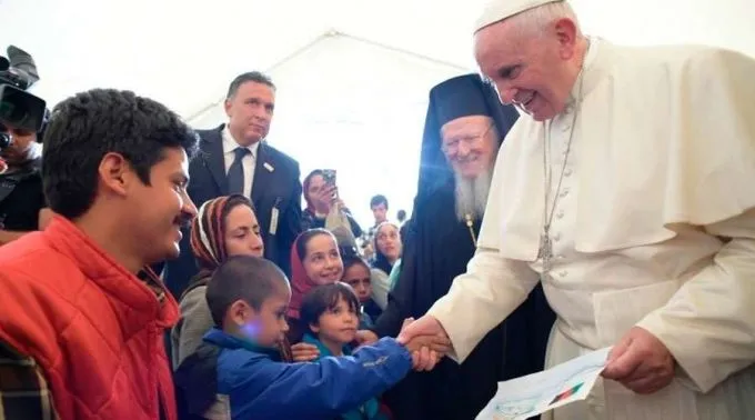 Papa com um grupo de refugiados na ilha de Lesbos em abril de 2016. Foto: L'Osservatore Romano